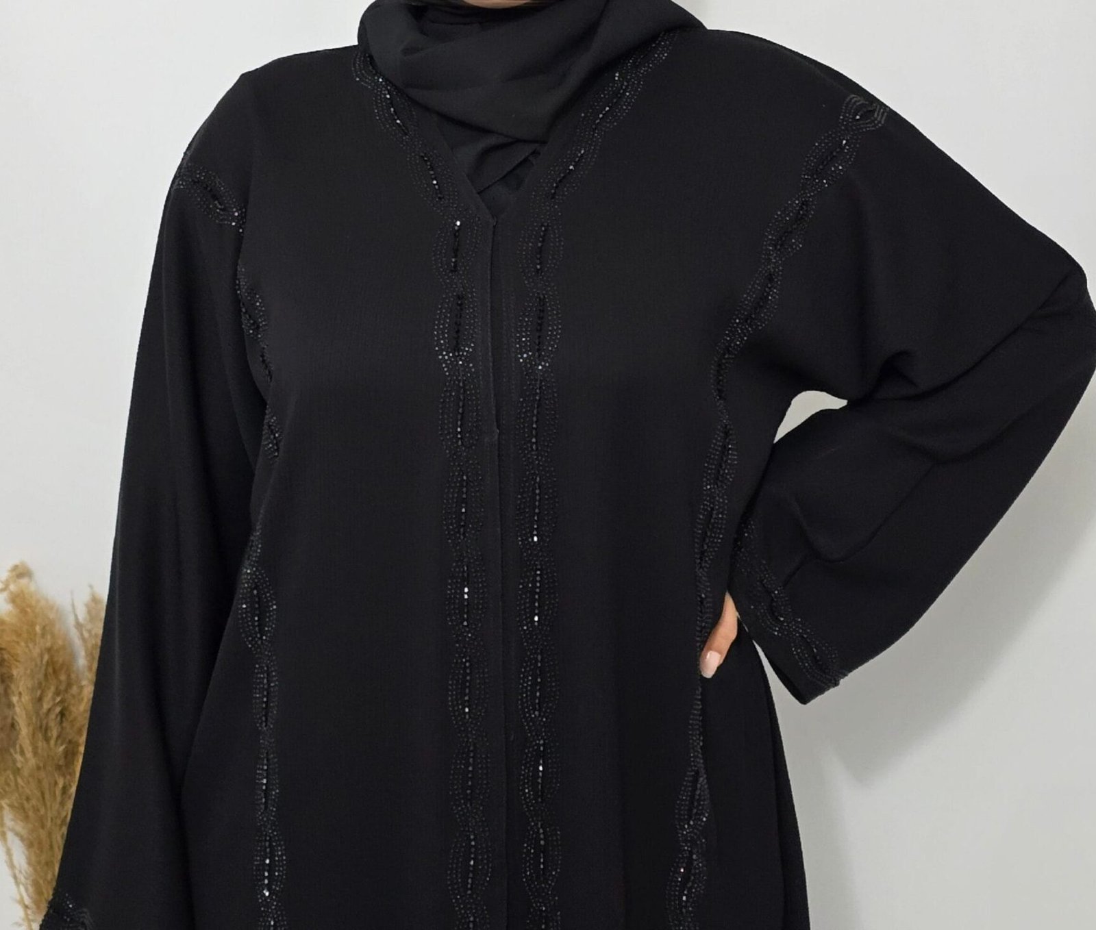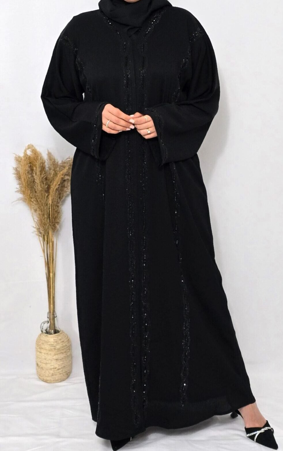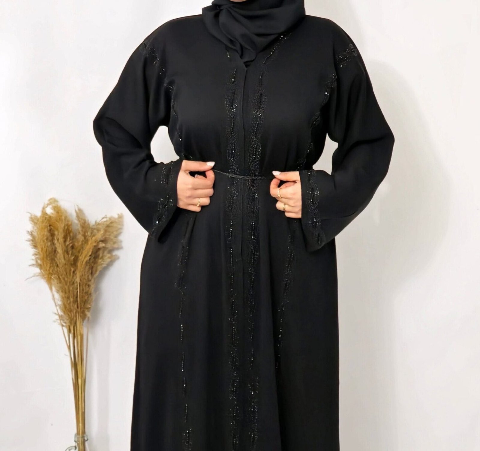 Abaya noire avec strass et perles : entre confort et adaptabilité