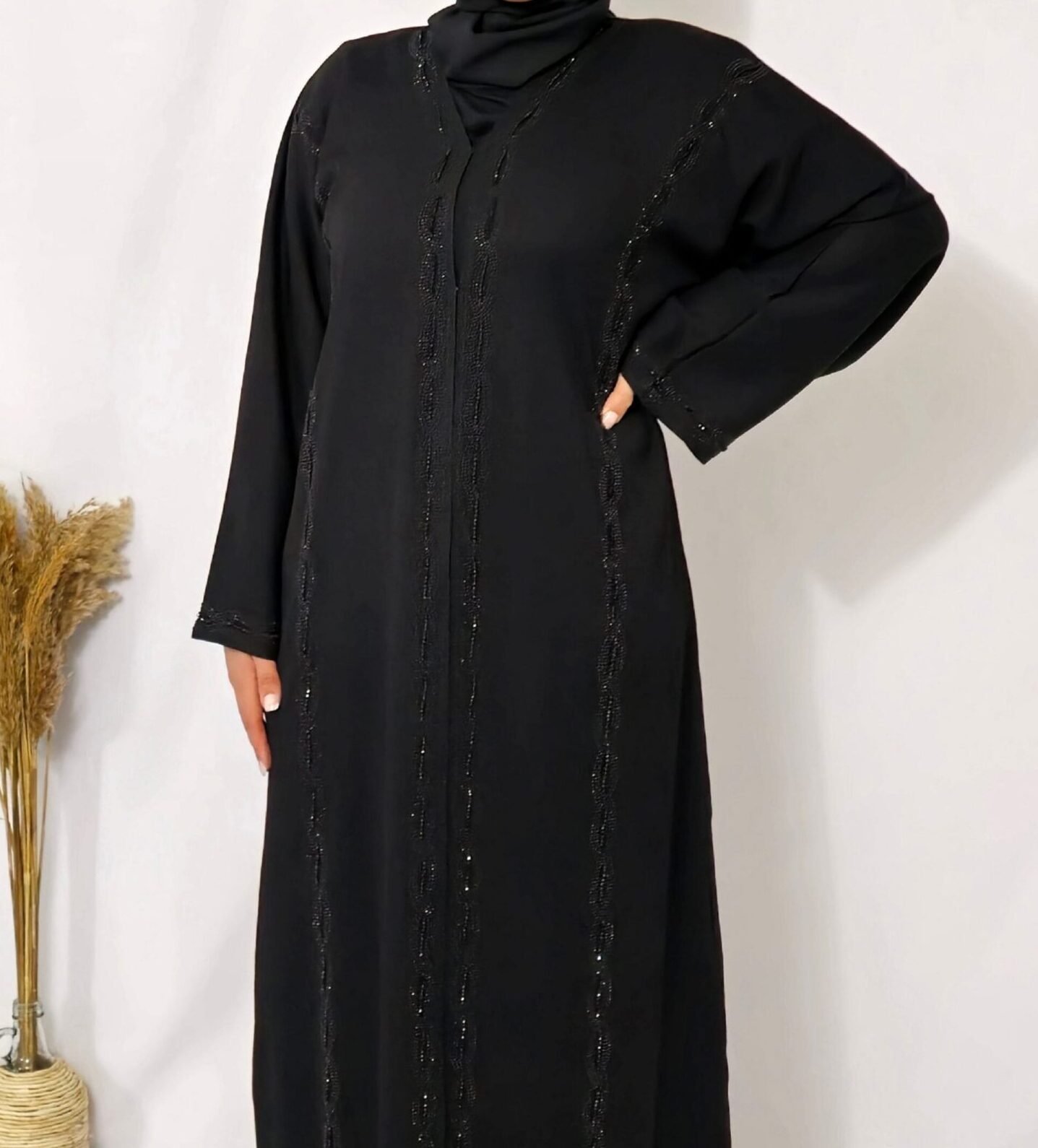 Abaya noire avec strass et perles – Élégance faite main et raffinement intemporel