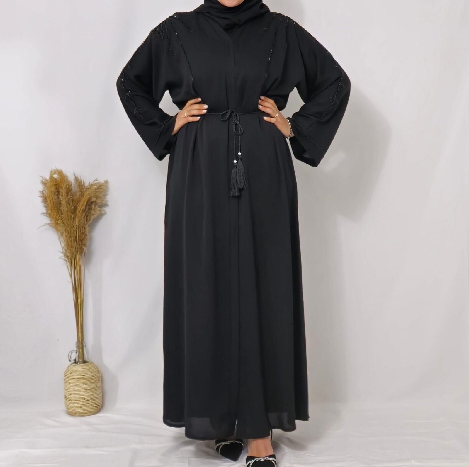 Abaya noire perlée – Intemporelle, élégante et travaillée à la main